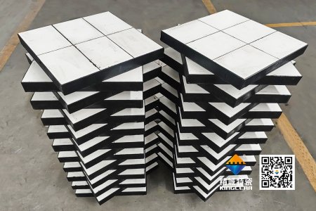 陶瓷層作為主要抗磨損的材料,其洛氏硬度在85RHA以上,莫氏硬度達到9級,是一種高硬度、高耐磨性材料。它能夠有效抵御物料的切割和磨損作用。同時,橡膠層的加入不僅增加了襯板的韌性,能夠緩沖物料帶來的沖擊力,降低噪音,還提高了襯板的安裝便捷性。鋼板則作為襯板的基體,提供了必要的強度和支撐。
